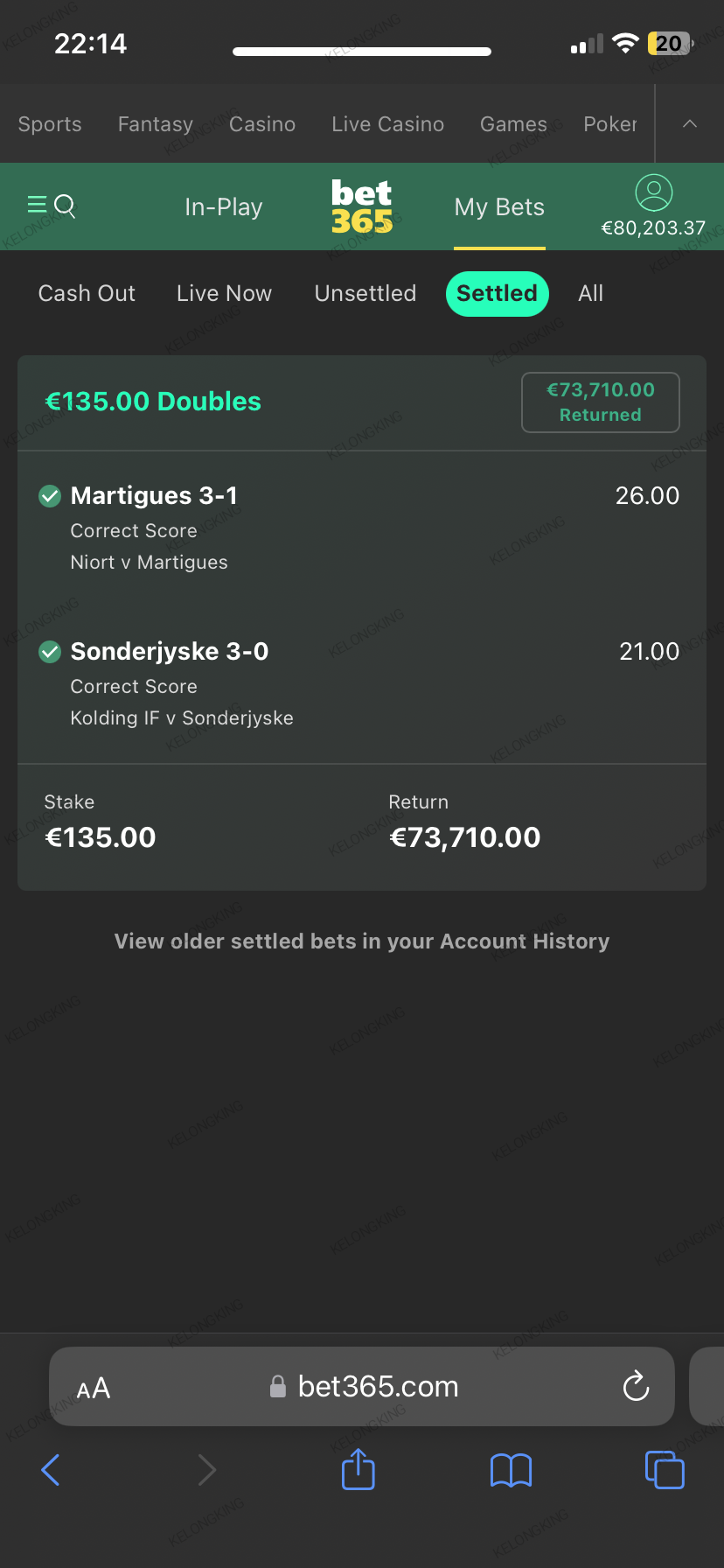 | 26.04.2024 | Kolding IF vs Sonderjyske | 0:3 | 21.00 | 0:3 |